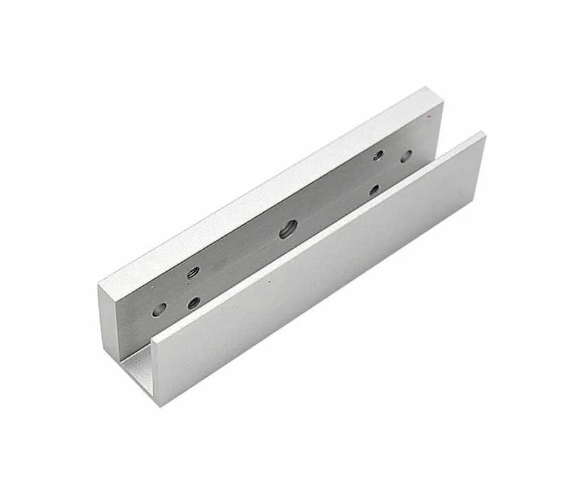 Accesorio metálico diseñado específicamente para instalar cerraduras electromagnéticas de 600 lb (280 kg) en puertas de vidrio sin marco