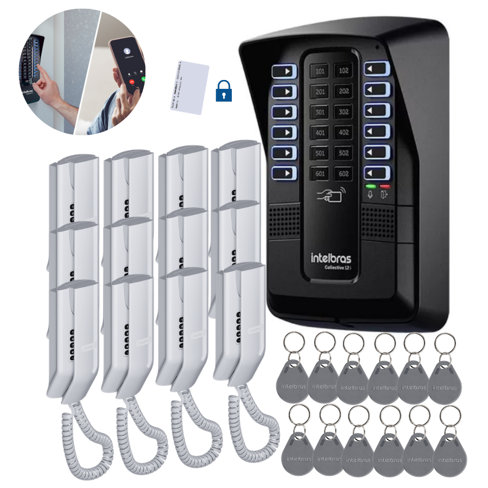 A-KIT COLL12i CENTRAL DE PORTERÍA COLLECTIVE 12i / 1 PLACA / 12 CITÓFONOS/ 12 TAGS D/F / TARJETA MASTER